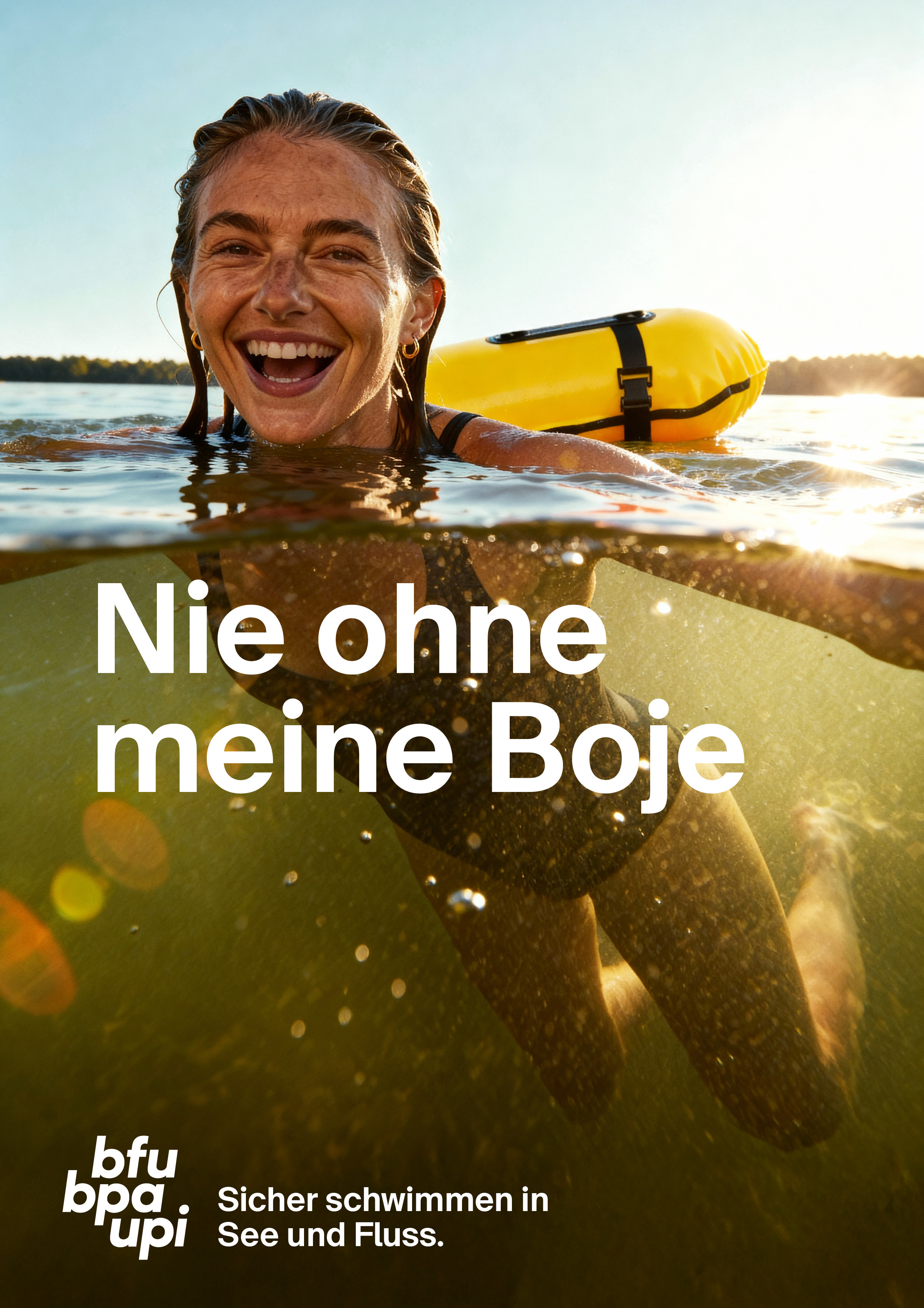 Als nationales Kompetenzzentrum arbeitet die BFU mit Organisationen, Institutionen, Verbänden und Unternehmen zusammen, um Unfallrisiken durch aktive Prävention zu senken. Die Kampagne «Nie ohne meine Boje» ist eine gemeinsame Produktion der Schweizerischen Lebensrettungs-Gesellschaft SLRG, Swiss Aquatics und der BFU.