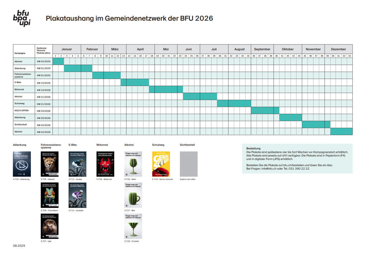 Der folgende Kampagnenplan zeigt, wann welche Kampagne der BFU läuft: