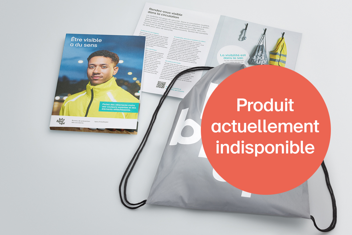 Qui réfléchit est vu‧e plus tôt et mieux. Cela est vrai tout le temps, mais plus particulièrement en cas de mauvaises conditions météorologiques, au crépuscule et la nuit. Porter des vêtements clairs, des couleurs voyantes et des éléments réfléchissants est l’un des quatre conseils du nouveau SafetyKit. Sensibilisez votre personnel à l’importance de se rendre visible grâce à nos recommandations. Car être visible est une brillante idée!