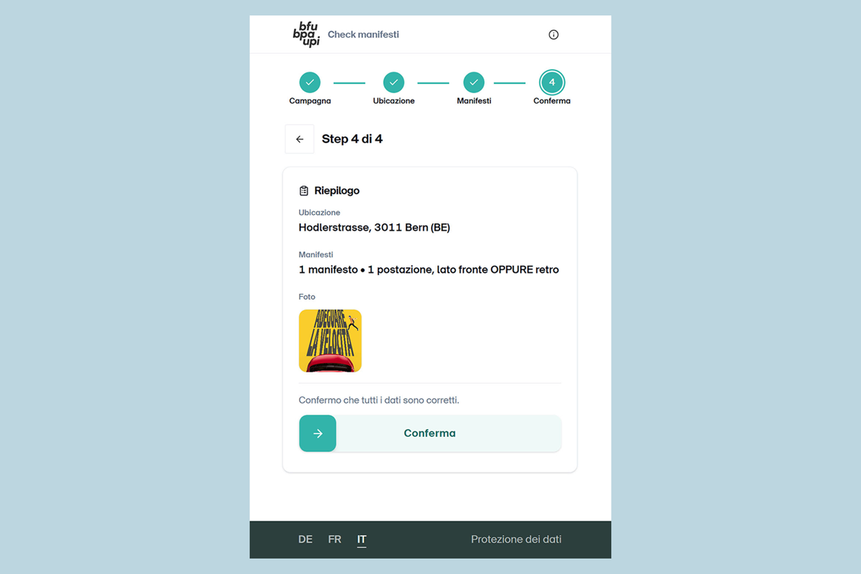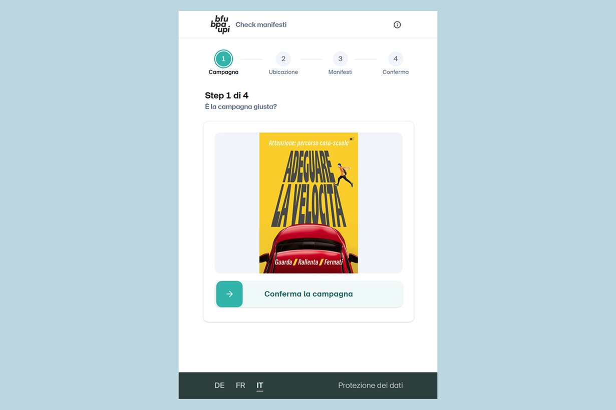 Ogni singolo manifesto nella rete dell’UPI dei Comuni svizzeri fa la differenza, perché diffonde i nostri messaggi di prevenzione proprio dove la sicurezza è importante per chi si muove nel traffico.